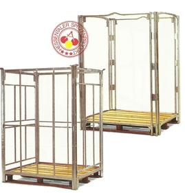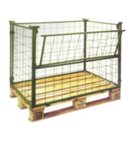 Für alle gängigen Palettengrößen, in unterschiedlichen Nutzhöhen, mit eingeschweißtem Gitter, eine Längsseite mittig abklappbar Leerzustand flach zusammenklappbar.