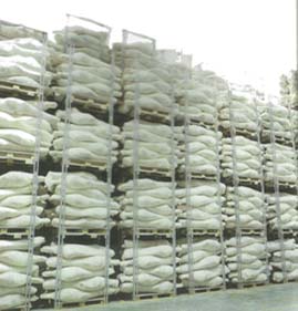 Variant-Eckrohr-Container zur Bildung hoher und sicherer Stapelsäulen. Speziell in Kühl- und Lagerhäusern einsetzbar.